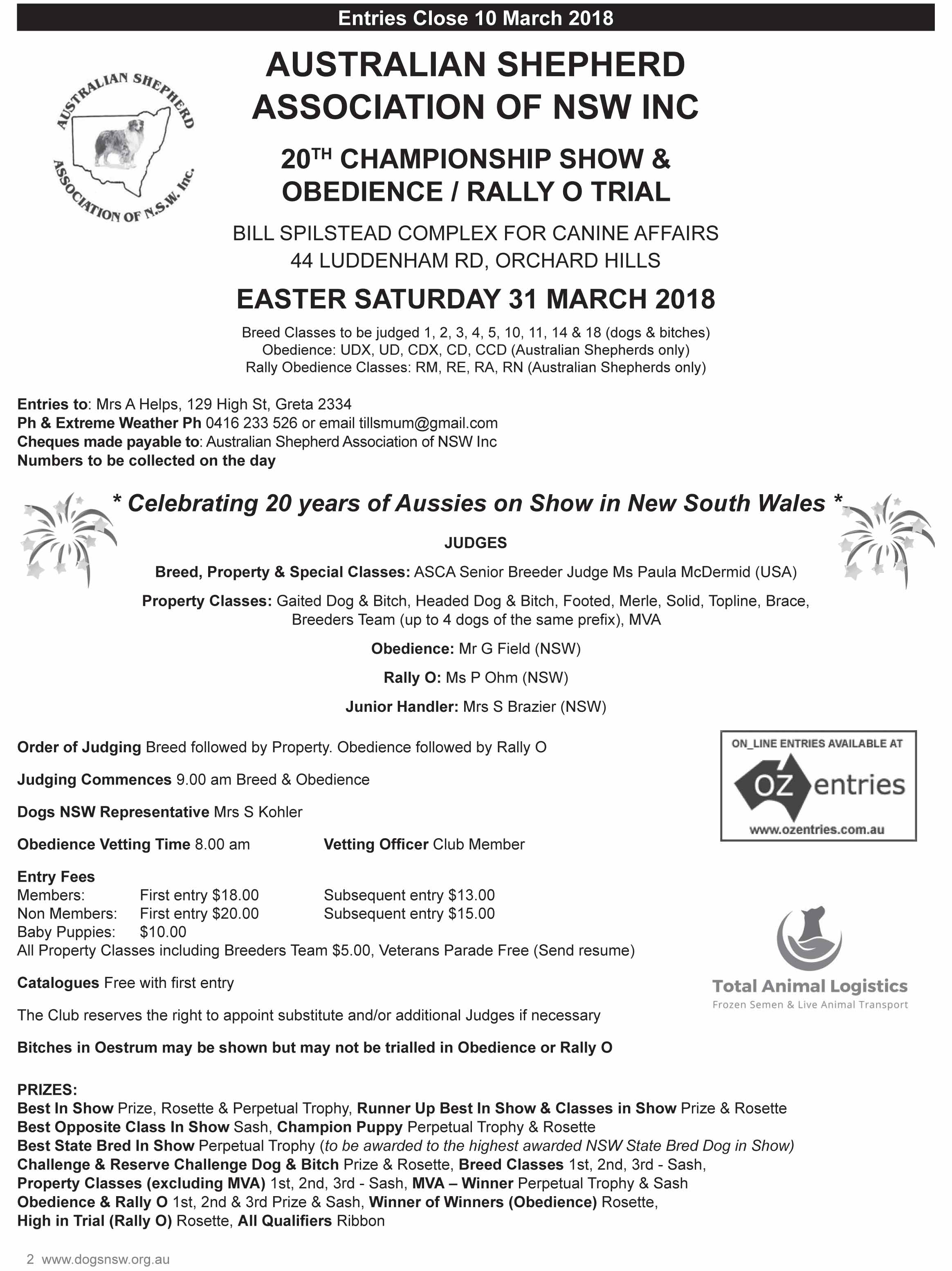 2018 Conformation Show, Obedience & Rally O Trial